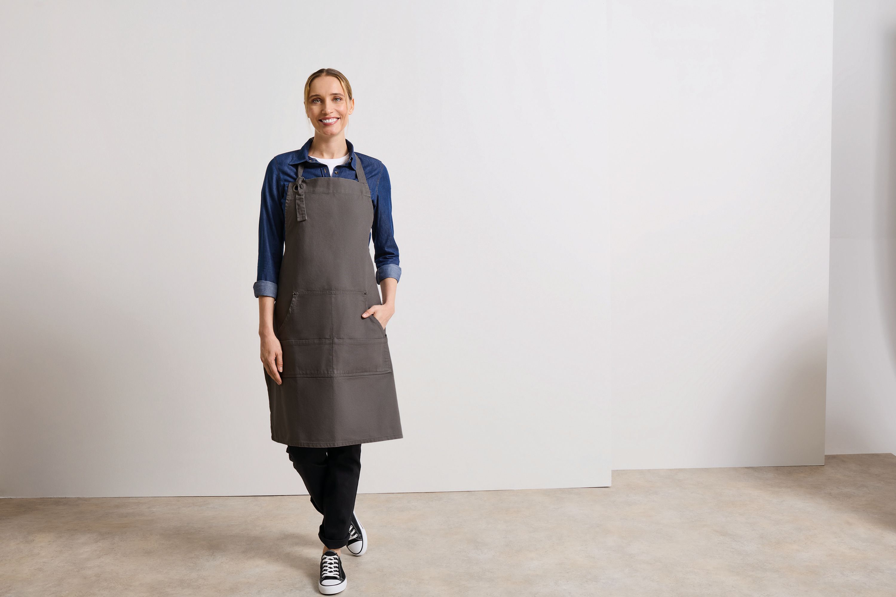 El delantal de algodón es la elección perfecta para aquellos que buscan comodidad y durabilidad en la cocina. Fabricado con 100% algodón, este delantal ofrece una sensación suave y natural, ideal para largas horas de uso. Disponible en una variedad de colores como negro, rojo, gris, verde, beige y azul, se adapta a cualquier estilo y preferencia. Su diseño incluye un bolsillo tipo canguro con cuatro compartimentos, proporcionando un espacio práctico para guardar utensilios y accesorios de cocina.