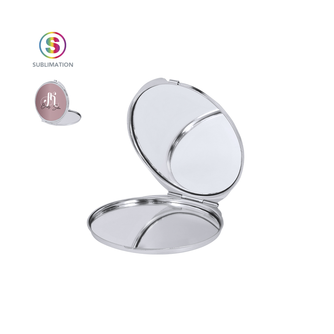 El espejo plegable x2 con placa sublimable es la combinación perfecta de estilo y practicidad. Fabricado en metal, este espejo no solo es duradero, sino que también ofrece un diseño elegante que se adapta a cualquier bolso o cartera. Con un diámetro de 7 cm y un peso ligero de 17 gramos, es el compañero ideal para llevar a todas partes. Su diseño plegable protege los espejos interiores, asegurando que siempre estén en perfectas condiciones para su uso.