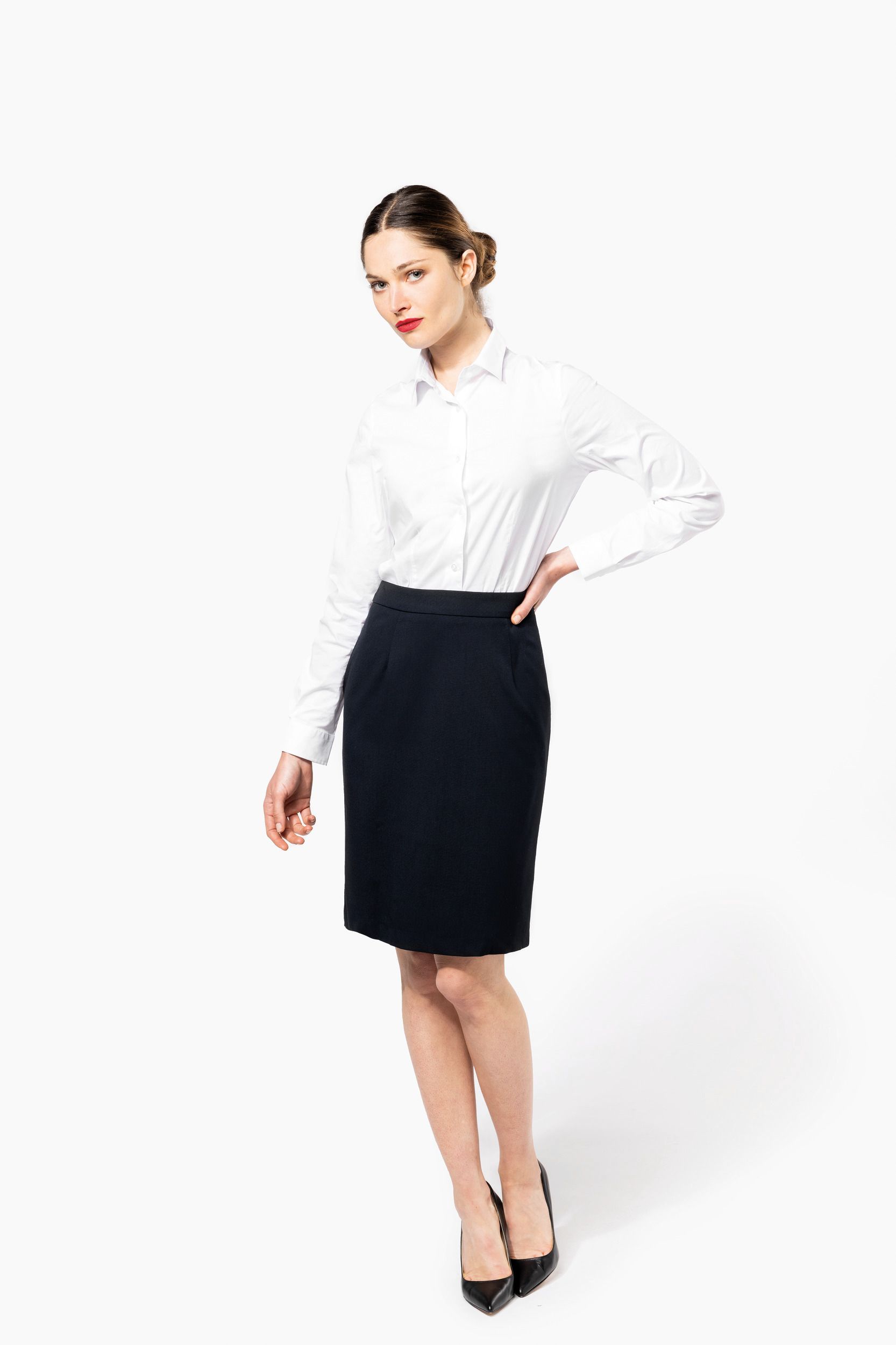 La falda tubo con forro extensible es la prenda imprescindible para quienes buscan un estilo sofisticado sin renunciar al confort. Su confección en una mezcla de poliéster, viscosa y elastano garantiza un ajuste perfecto y una sensación agradable al tacto. El forro extensible proporciona libertad de movimiento, convirtiéndola en la opción ideal tanto para largas jornadas laborales como para eventos especiales. Disponible en colores atemporales como negro, azul marino y gris antracita, esta falda se adapta a cualquier armario y ocasión.