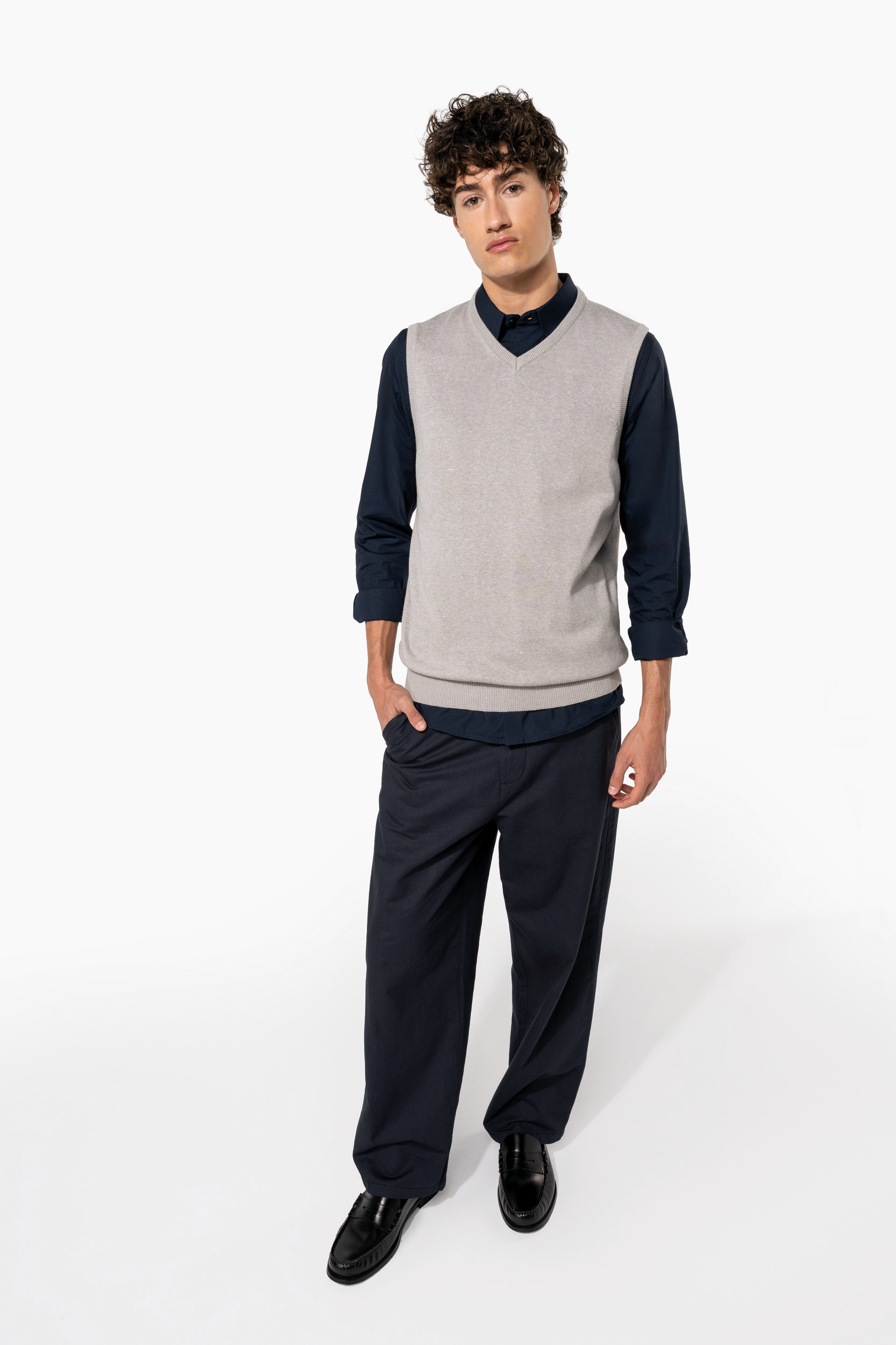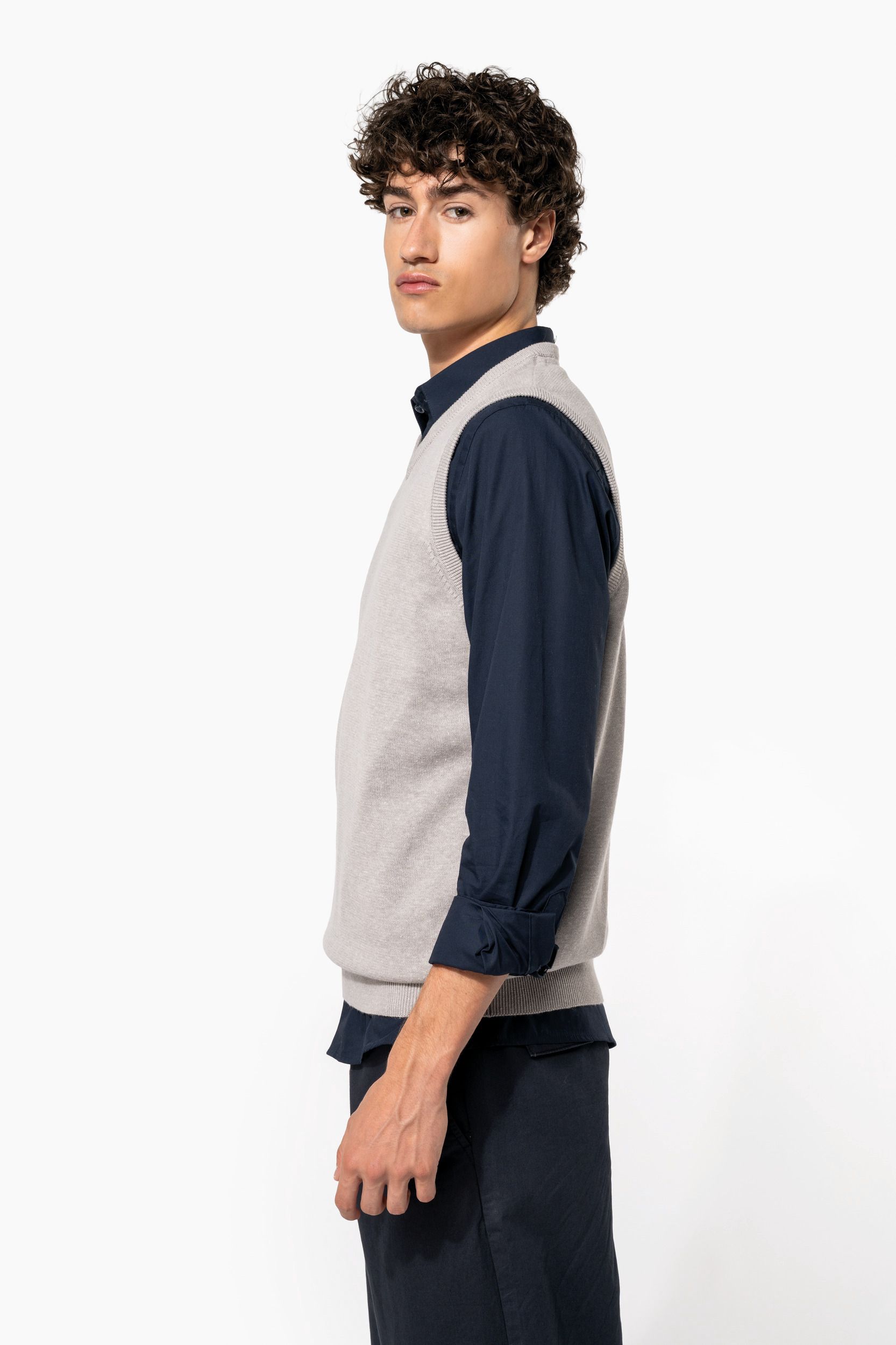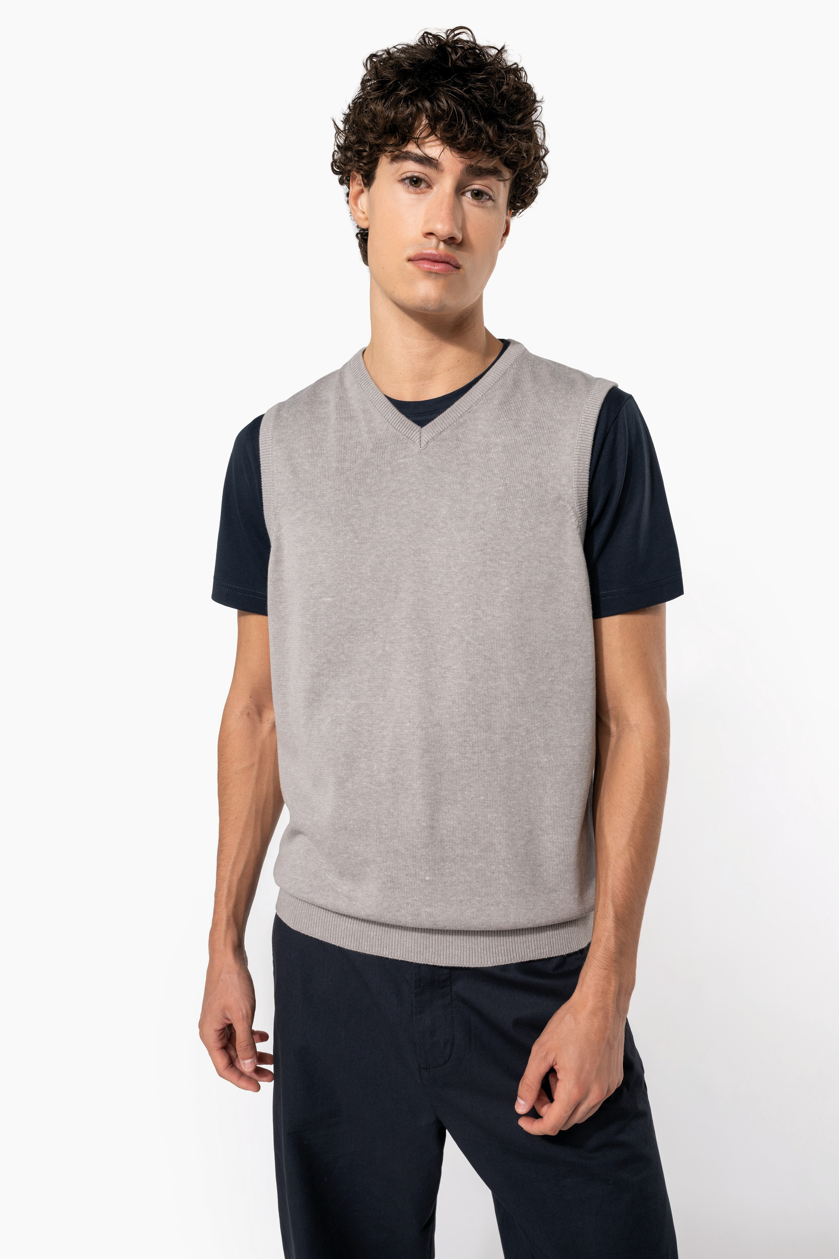 El punto de canalé doble espesor en el cuello y las sisas garantiza una mayor durabilidad y resistencia al desgaste, haciendo de este jersey una opción ideal para el uso diario. La tira cubrecosturas en el cuello añade un toque de calidad y confort adicional. Con un peso medio de 238g en la talla l, este jersey es ligero y fácil de llevar. Perfecto para combinar con camisas, camisetas o llevar solo, el jersey sin mangas es una prenda versátil que no puede faltar en el armario de cualquier persona que valore el estilo y la funcionalidad.