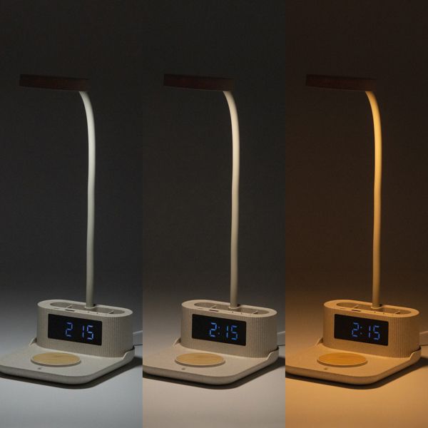 La lámpara con cargador inalámbrico y reloj es la opción perfecta para quienes buscan optimizar su espacio con un solo producto. Fabricada en fibra de trigo y bambú, combina sostenibilidad y durabilidad, aportando un toque natural y elegante a cualquier ambiente. Sus tres tipos de luz y niveles de intensidad ajustables permiten crear la atmósfera ideal para estudiar, trabajar o relajarse. Además, su diseño plegable facilita el almacenamiento y la movilidad, adaptándose a las necesidades de hogares, oficinas y dormitorios.