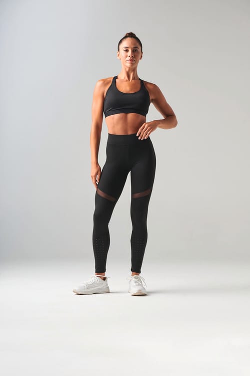 Los leggings con paneles de malla están diseñados para ofrecer la máxima comodidad y estilo durante cualquier actividad física. Confeccionados con un tejido opaco y elástico compuesto por 87% poliéster y 13% elastán, estos leggings se adaptan perfectamente al cuerpo, proporcionando una sensación de segunda piel. La cintura ancha con bolsillo interior asegura que se mantengan en su sitio incluso durante los entrenamientos más intensos, como las sentadillas.