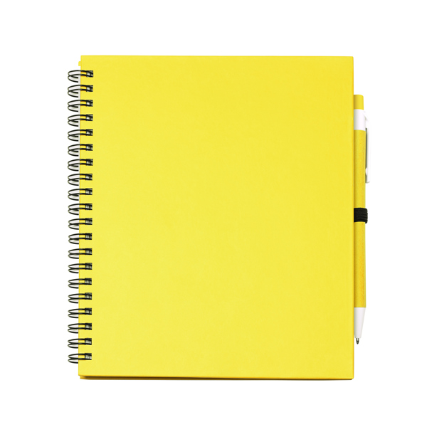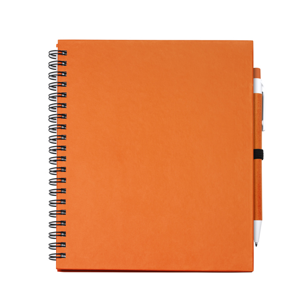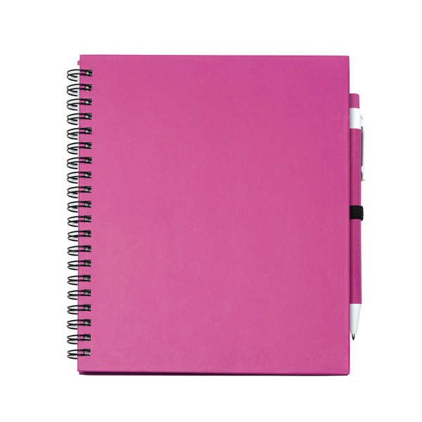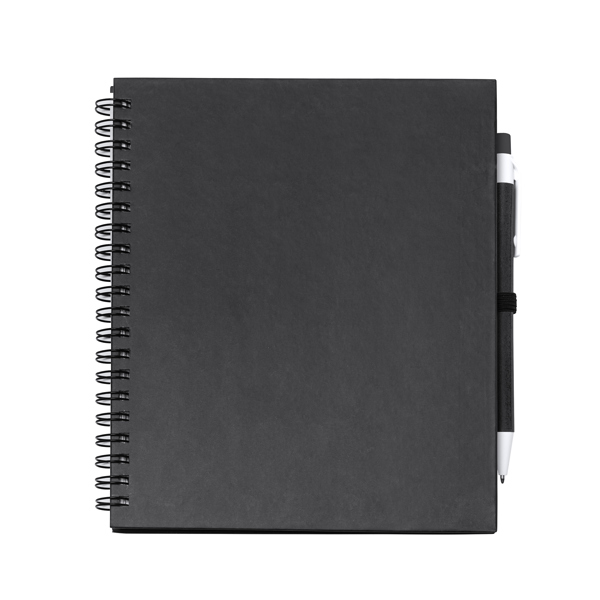 La libreta de espiral y tapas rígidas destaca por su soporte para bolígrafo integrado y el bolígrafo de cartón reciclado a juego, una combinación perfecta para quienes buscan productos funcionales y respetuosos con el medio ambiente. Su tamaño compacto de 15 cm la hace fácil de transportar, ideal para llevar a reuniones, clases o viajes. Esta libreta económica es una excelente opción para regalar o para uso personal, asegurando siempre tener a mano un espacio donde plasmar ideas, listas o recordatorios. Una elección inteligente para quienes buscan calidad, sostenibilidad y practicidad en un solo producto.