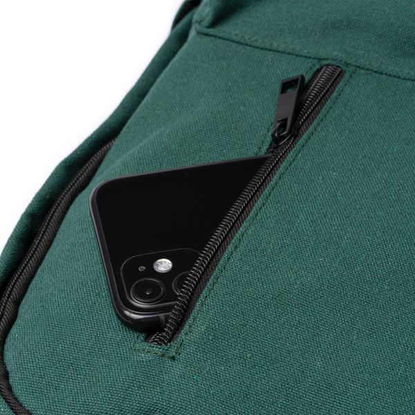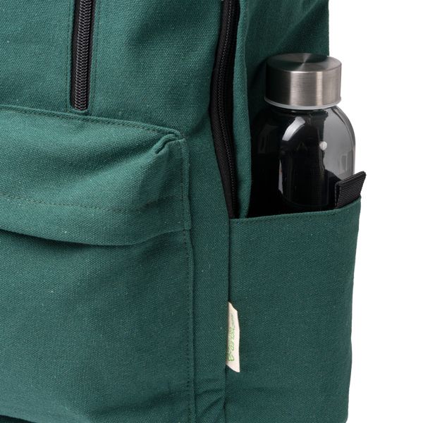La mochila de algodón reciclado 330 g/m2 es la opción perfecta para quienes buscan un accesorio práctico y ecológico. Su amplio compartimento principal permite transportar todo lo necesario para la jornada, desde libros hasta ropa o material de oficina. El bolsillo interior está diseñado para proteger portátiles o dispositivos de hasta 15 pulgadas, convirtiéndola en una excelente elección para estudiantes, profesionales y viajeros urbanos. Los dos bolsillos exteriores con cierre de cremallera ofrecen espacio seguro para objetos de uso frecuente, mientras que los bolsillos laterales son ideales para botellas de agua o pequeños accesorios.