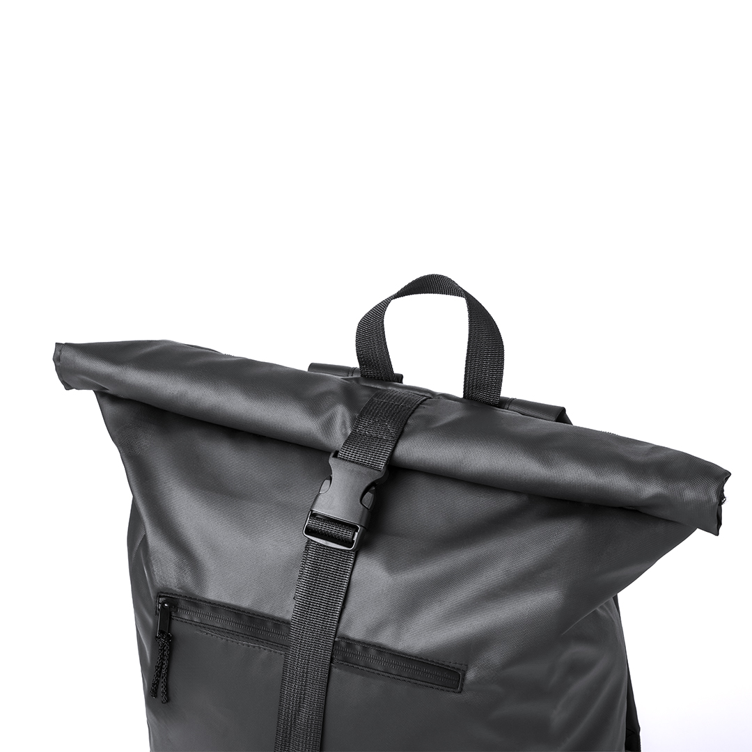 Las cintas ajustables y acolchadas para los hombros garantizan un confort inigualable durante su uso, mientras que la asa de mano ofrece versatilidad al transportarla. La mochila polipiel roll up acolchada se presenta en un color negro clásico que combina con cualquier estilo, haciéndola un accesorio indispensable para el profesional moderno, el estudiante o el aventurero urbano. Además, viene en una bolsa individual reciclada, demostrando un compromiso con la sostenibilidad.