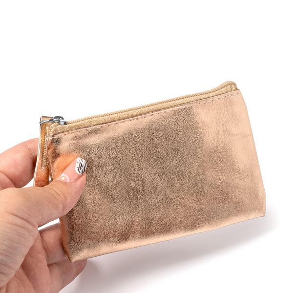 El monedero de pu brillante es la elección perfecta para quienes buscan un accesorio elegante y práctico. Su acabado brillante en colores modernos como plata, oro y rosa dorado lo convierte en el complemento ideal para cualquier ocasión, desde eventos especiales hasta el día a día. Gracias a su tamaño compacto de 12 cm, cabe fácilmente en cualquier bolso o mochila, permitiendo llevar monedas, billetes y pequeños objetos de forma segura y organizada. La cremallera resistente y el tirador a juego garantizan un cierre seguro y un acceso rápido a su contenido.