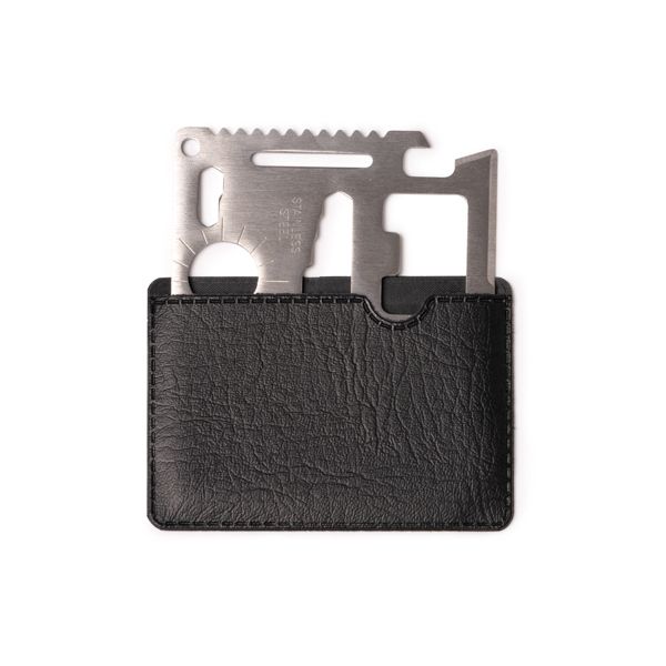 Esta multiherramienta de acero inoxidable con 11 funciones ofrece soluciones rápidas y eficaces gracias a sus herramientas integradas: abrelatas, cuchillo afilado, destornillador, regla, abrebotellas, llaves inglesas, llaves de mariposa, sierra para pequeñas tareas e indicador de dirección. Es perfecta para aventureros, campistas, ciclistas o cualquier persona que valore la funcionalidad y el ahorro de espacio. Presentada en una funda de pu, es una opción económica y práctica para regalar o tener siempre a mano en cualquier situación.