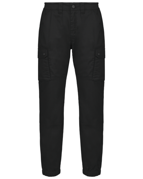 Este pantalón cargo unisex no solo es resistente, sino también altamente funcional. Dispone de múltiples bolsillos: dos delanteros, dos laterales con solapa y botón a presión, y uno trasero con cremallera, ideales para llevar todo lo necesario. El cierre con cremallera y botón de plástico añade un toque de practicidad. Disponible en colores negro, verde y azul, y en una amplia gama de tallas desde la 34 fr hasta la 62 fr, este pantalón es perfecto tanto para el trabajo como para actividades al aire libre. Su bajo de pierna elástico y la etiqueta de marca extraíble completan un diseño pensado para quienes buscan versatilidad y estilo.