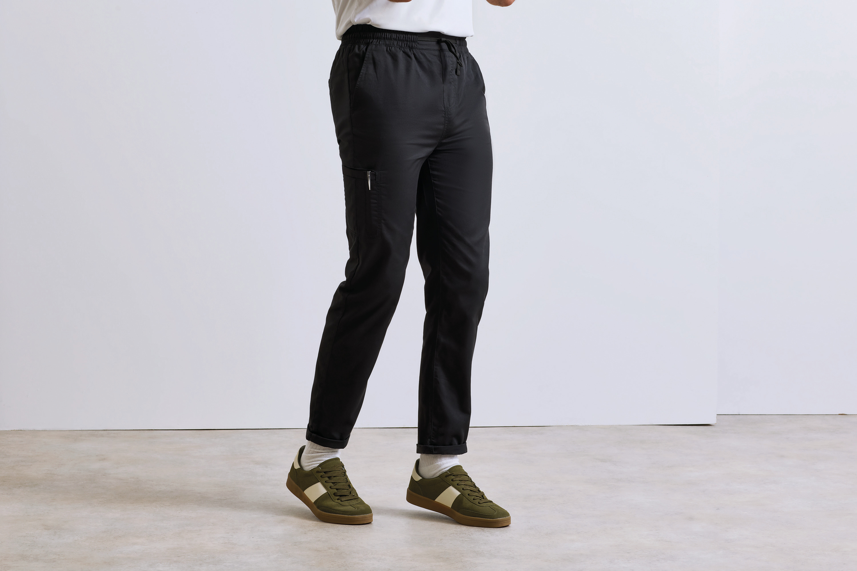 El pantalón de cocina es la elección perfecta para aquellos que buscan comodidad y estilo mientras trabajan. Confeccionado con un 65% de poliéster reciclado y un 35% de algodón, este pantalón ofrece una combinación ideal de durabilidad y suavidad. La cintura elástica y el cordón de ajuste aseguran un ajuste perfecto, permitiendo libertad de movimiento durante largas jornadas en la cocina.