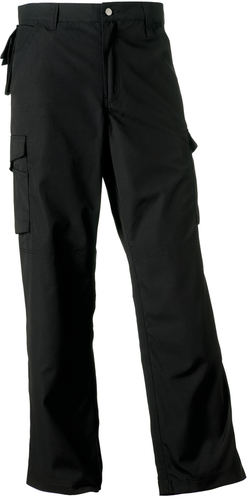 Este pantalón laboral destaca por su funcionalidad gracias a sus múltiples bolsillos, incluyendo bolsillos cargo en cada pierna con prácticos compartimentos y un bolsillo para teléfono móvil debajo de la cintura. Los bolsillos interiores para rodilleras y el fondo reforzado lo hacen perfecto para trabajos manuales intensivos. Con un cierre de cremallera ykk® y costuras interiores reforzadas, este pantalón está diseñado para durar. Disponible en colores negro, gris y azul, y en una amplia gama de tamaños, es lavable a máquina a 60°c y apto para secar en secadora.