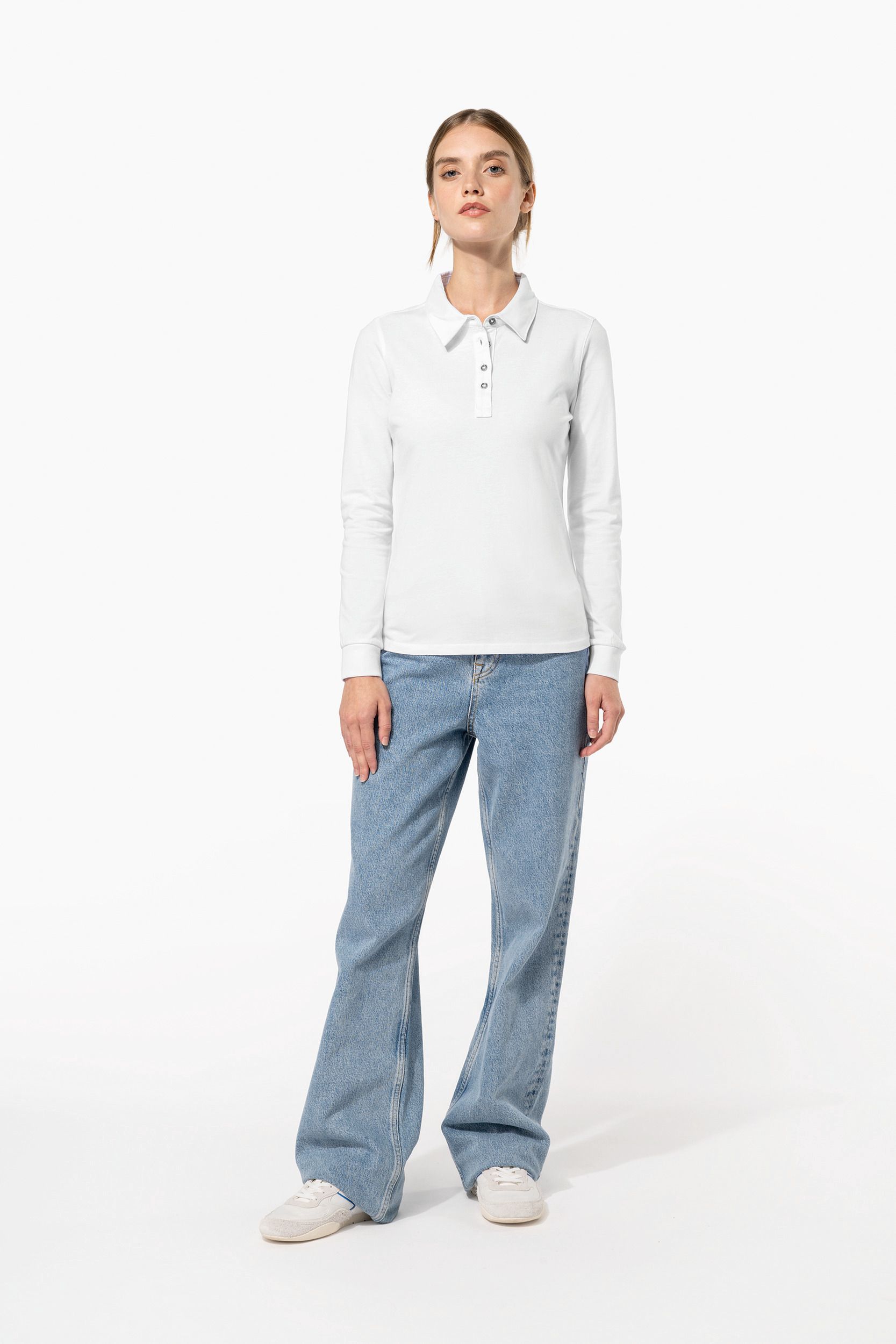 El polo jersey manga larga mujer es la prenda perfecta para cualquier ocasión. Confeccionado en 100% algodón, ofrece una suavidad y comodidad inigualables. Disponible en una amplia gama de colores como negro, gris, azul y blanco, y en tallas desde xs hasta xxl, se adapta a todas las preferencias y necesidades. Su diseño incluye un cuello de camisa y una tapeta con 4 botones de metal, que le dan un toque elegante y sofisticado.