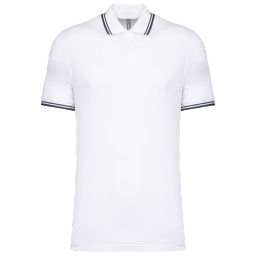 El polo manga corta hombre destaca por su corte ajustado y su punto piqué, que le confieren un aspecto moderno y sofisticado. La tapeta de 2 botones a tono en el cuello y las aberturas laterales con tira de tejido principal como acabado, añaden un toque de distinción. Además, el acabado de canalé con ribete contrastado en cuello y puños y el doble pespunte en el bajo de la prenda aseguran una durabilidad y resistencia excepcionales.