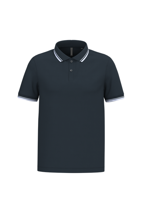El polo manga corta hombre destaca por su corte ajustado y su punto piqué, que le confieren un aspecto moderno y sofisticado. La tapeta de 2 botones a tono en el cuello y las aberturas laterales con tira de tejido principal como acabado, añaden un toque de distinción. Además, el acabado de canalé con ribete contrastado en cuello y puños y el doble pespunte en el bajo de la prenda aseguran una durabilidad y resistencia excepcionales.