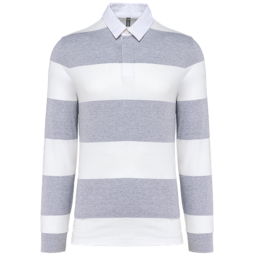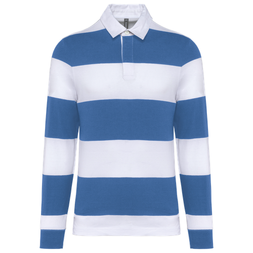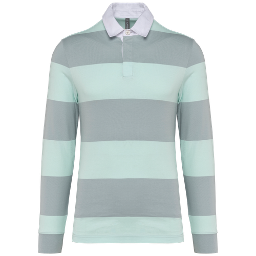 Las tallas del polo a rayas unisex de manga larga están detalladas en la tabla de medidas adjunta.