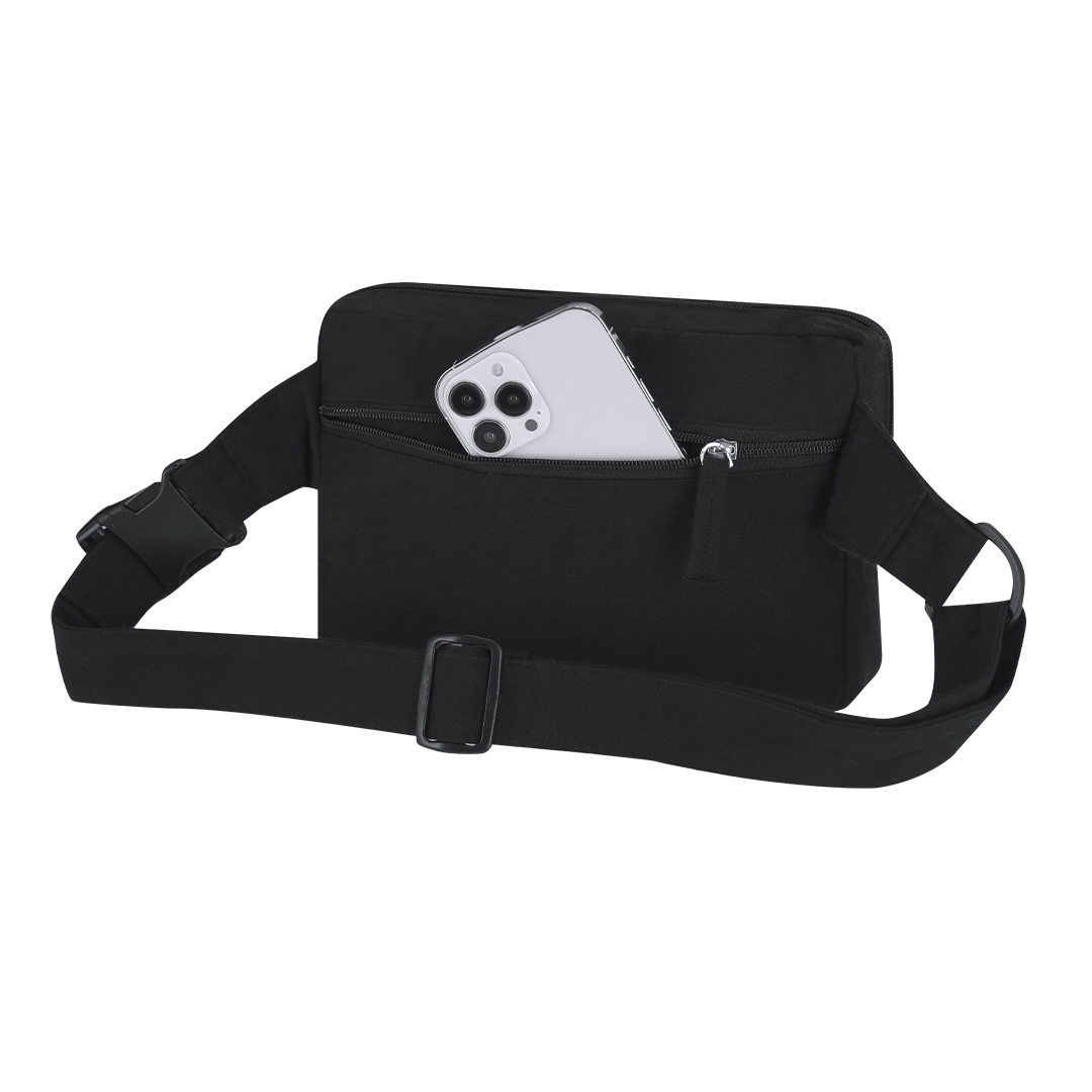 La riñonera rectangular canvas reciclado es la elección perfecta para quienes buscan un accesorio que combine estilo y sostenibilidad. Fabricada con canvas reciclado de 300 g/m2, esta riñonera no solo es resistente, sino también respetuosa con el medio ambiente. Su diseño en color negro la hace versátil y fácil de combinar con cualquier atuendo, desde un look casual hasta uno más formal. Con un peso ligero de 170 gramos, es ideal para llevar lo esencial sin añadir carga innecesaria.