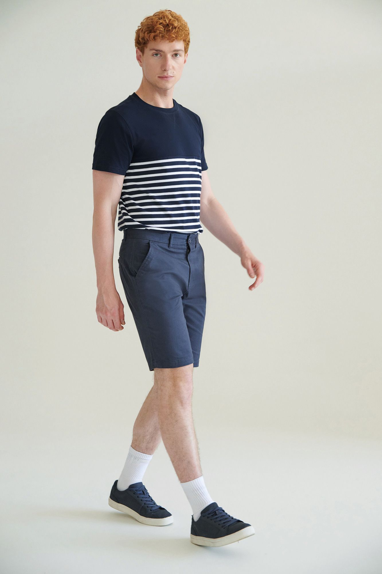 El short chino para hombre es la prenda imprescindible para quienes buscan versatilidad y comodidad en su vestuario. Su composición de 97% algodón y 3% elastán proporciona una sensación suave al tacto y una ligera elasticidad que se adapta a cada movimiento. Disponible en los elegantes colores navy y stone, este short es perfecto tanto para paseos informales como para reuniones más formales en verano. Los bolsillos delanteros inclinados y los bolsillos traseros ribeteados ofrecen espacio suficiente para llevar lo esencial sin perder el estilo.