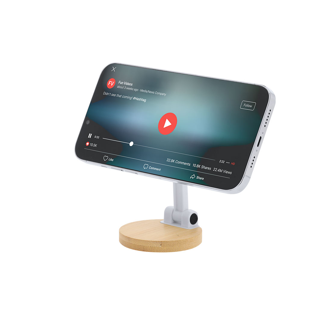 El soporte plegable con fijación magnética es la solución perfecta para quienes buscan comodidad y funcionalidad en su día a día. Diseñado para smartphones, este soporte ofrece una fijación magnética segura, compatible con magsafe, que garantiza estabilidad en cualquier superficie. Su diseño ajustable permite personalizar la posición del dispositivo, asegurando una experiencia de uso óptima en cualquier situación. Además, su construcción en bambú no solo aporta un toque estético natural, sino que también promueve el uso de materiales sostenibles, reduciendo el impacto ambiental.