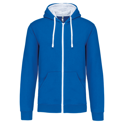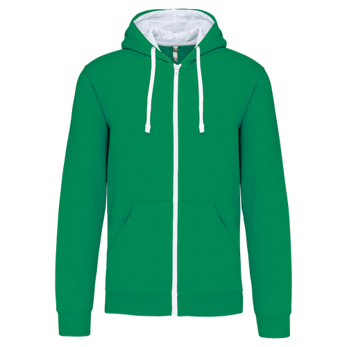 Disponible en una amplia gama de colores como negro, gris, verde, azul y rojo, y en tallas desde xs hasta 4xl, esta sudadera se adapta a todos los gustos y necesidades. La capucha con forro contrastado y cordón ajustable, junto con la cremallera contrastada, añaden un toque de estilo único. Además, el canalé en puños y bajo de la prenda asegura un ajuste perfecto, manteniendo el calor en los días más fríos.