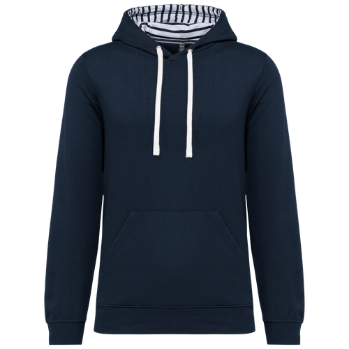 Esta sudadera no solo destaca por su comodidad, sino también por sus detalles cuidadosamente diseñados. El bolsillo canguro es perfecto para mantener las manos calientes o guardar pequeños objetos. La capucha forrada con tejido de algodón jersey estampado y el cordón de ajuste a contraste añaden un toque de estilo único. Los acabados de canalé 1x1 en puños y bajo de la prenda aseguran un ajuste perfecto y duradero. Además, la etiqueta de marca extraíble facilita la personalización, convirtiéndola en una opción ideal para equipos y eventos especiales.