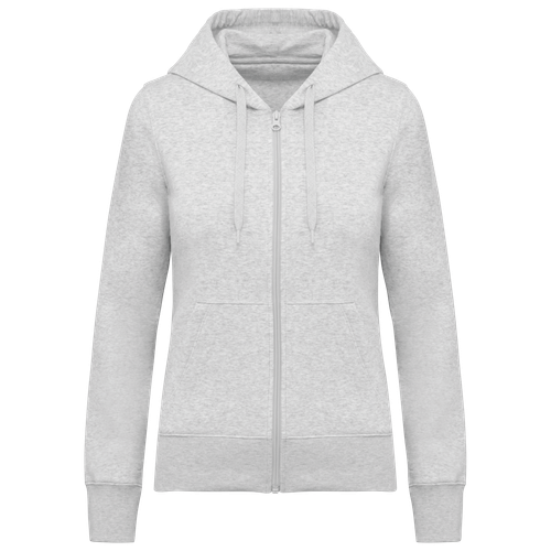 El diseño de esta sudadera eco con capucha mujer incluye un corte recto y un práctico bolsillo canguro, ideal para mantener las manos calientes o guardar pequeños objetos. La capucha forrada con algodón jersey de 180g añade un toque extra de confort y estilo. Los detalles como el cierre con cremallera de nylon a tono, el canalé 1x1 tubular en puños y bajo de la prenda, y la tira cubrecosturas de jersey a tono, aseguran un acabado de alta calidad. Disponible en una amplia gama de colores y tamaños, esta sudadera es perfecta para cualquier ocasión, desde un dÃa casual hasta una salida al aire libre.