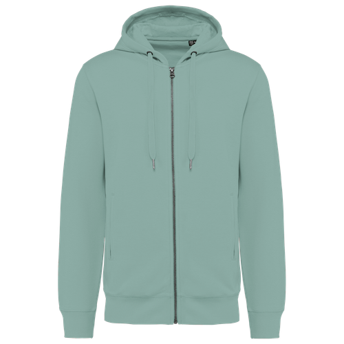 La sudadera eco unisex cuenta con un corte ajustado y dos bolsillos con ribete en la parte delantera, ideales para llevar pequeños objetos. El cierre con cremallera de metal y el canalé en puños, bajo de la prenda y contorno de la capucha aseguran un ajuste perfecto. La capucha forrada con cordón de ajuste a tono añade un toque de estilo adicional. Además, el acabado de media luna en el interior-posterior del cuello y la tira cubrecosturas en diseño espiga facilitan la personalización, haciendo de esta sudadera una opción ideal para empresas y eventos.