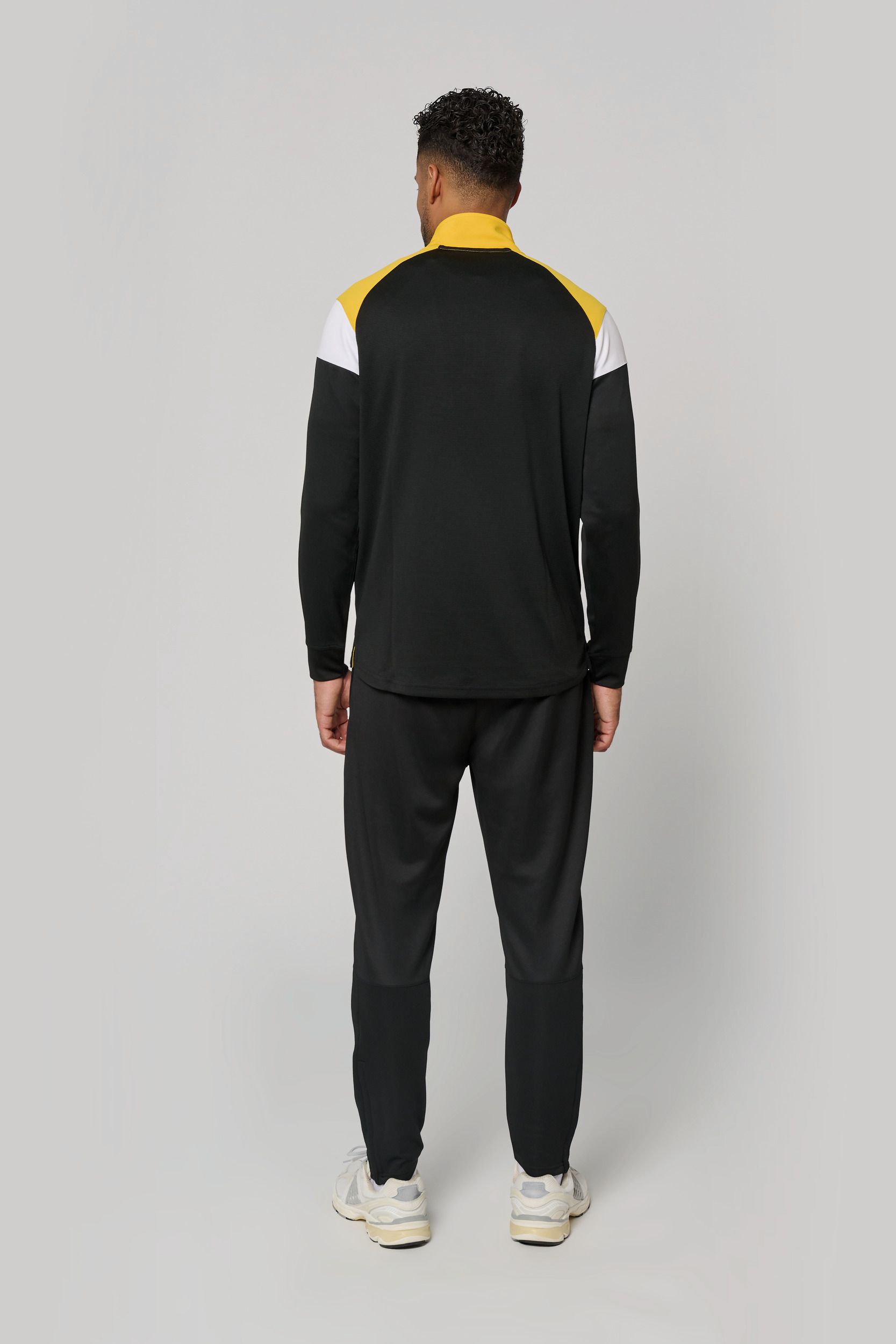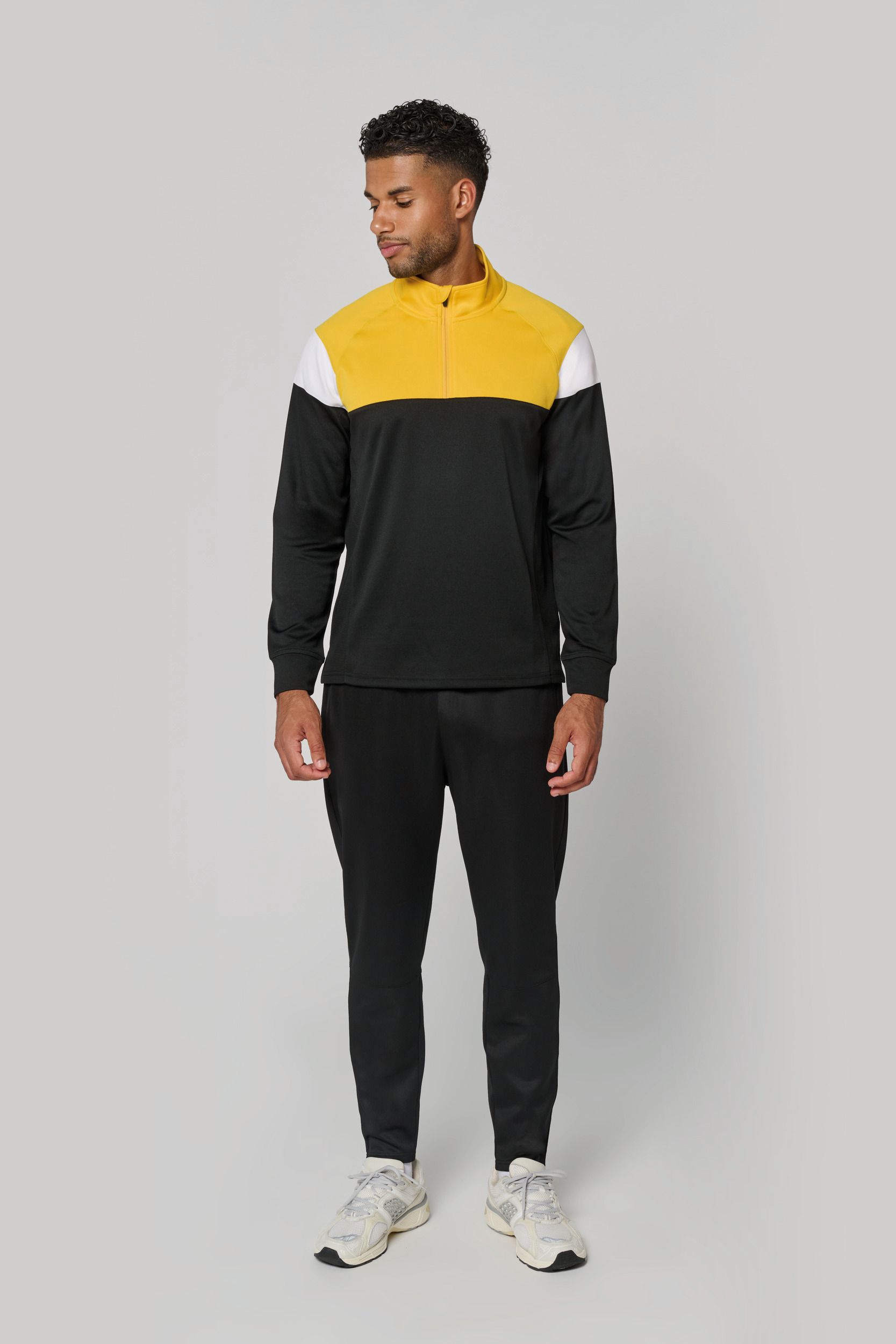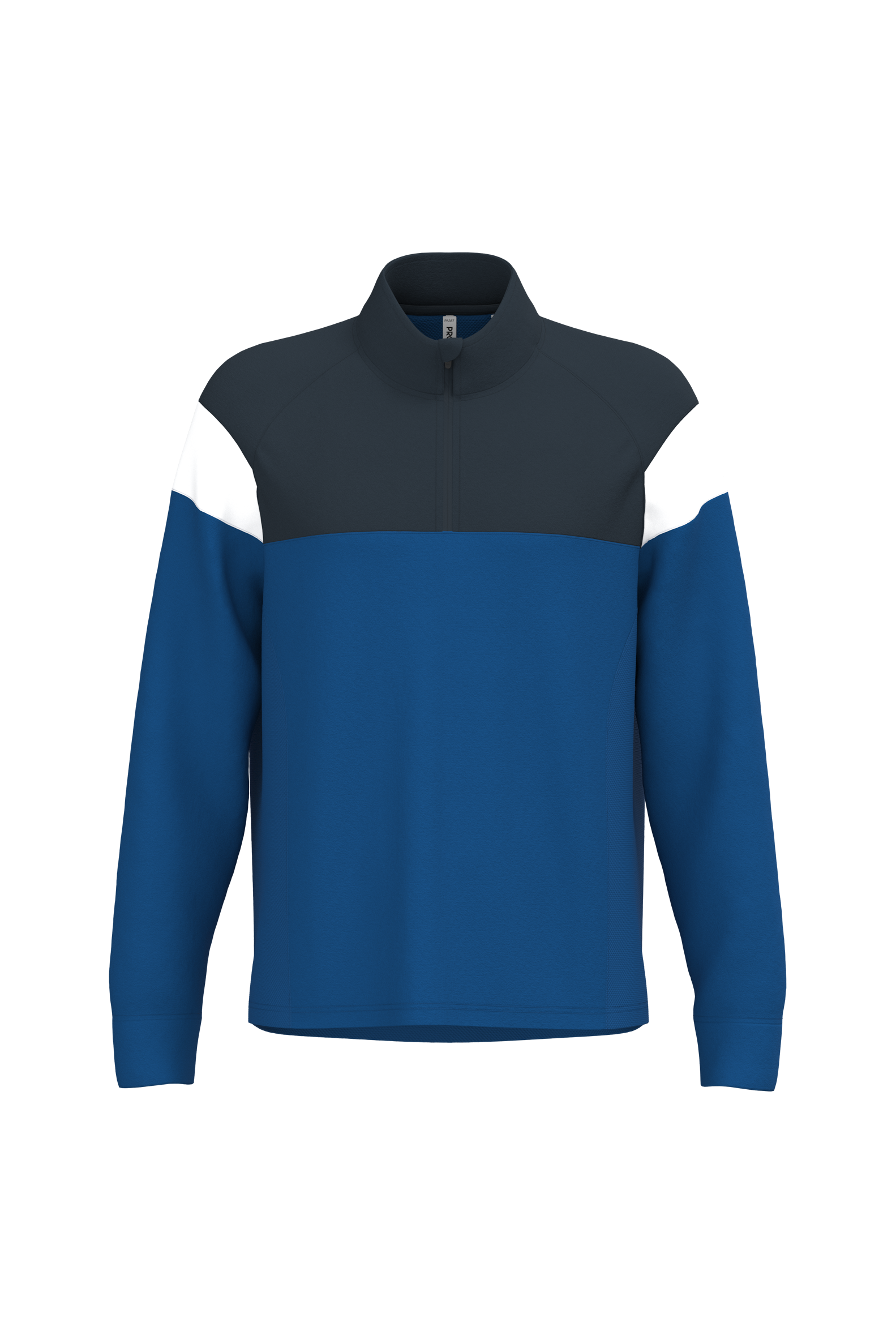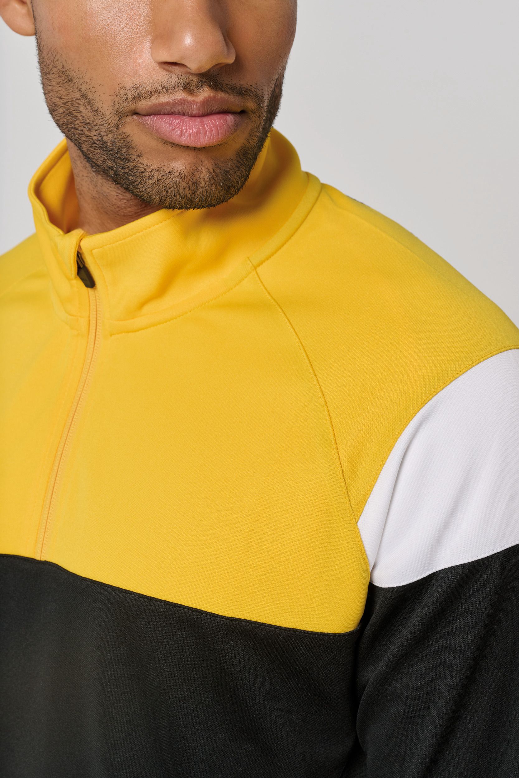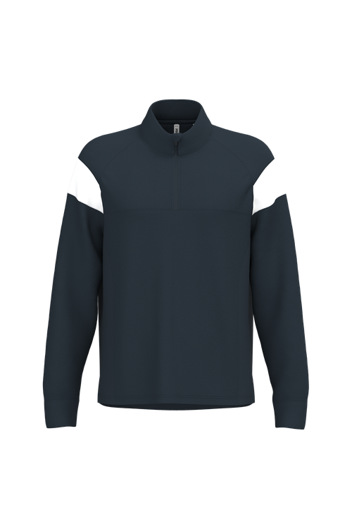 La sudadera de entrenamiento unisex está diseñada para ofrecer el máximo confort y rendimiento. Confeccionada en 100% poliéster interlock mate, esta prenda garantiza durabilidad y resistencia. Su corte recto y el cierre frontal con cremallera invertida de nailon a tono proporcionan un ajuste perfecto y moderno. Las mangas raglán con inserciones contrastadas en los hombros y los paneles a contraste en pecho y hombros añaden un toque de estilo único.