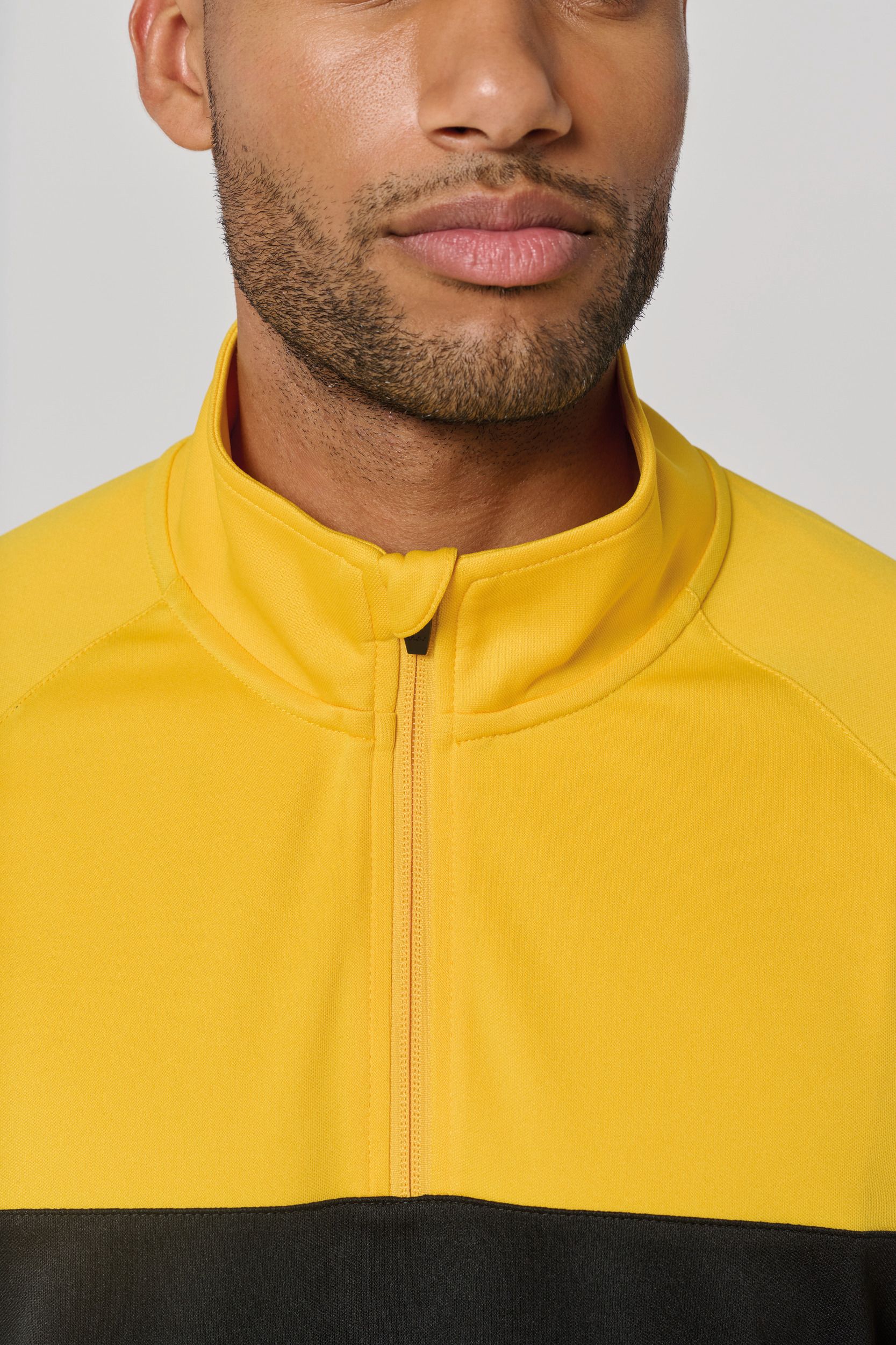 Esta sudadera cuenta con inserciones de tejido texturizado en los laterales y en la espalda, lo que mejora la ventilación y la comodidad. El dobladillo en la parte inferior y la espalda alargada, junto con las aberturas laterales, permiten una mayor libertad de movimiento. Además, el cubrecremallera en la parte superior del cuello añade un extra de confort. Disponible en una amplia gama de colores y tamaños, desde xs hasta 4xl, es ideal para cualquier persona que busque una prenda versátil y funcional.