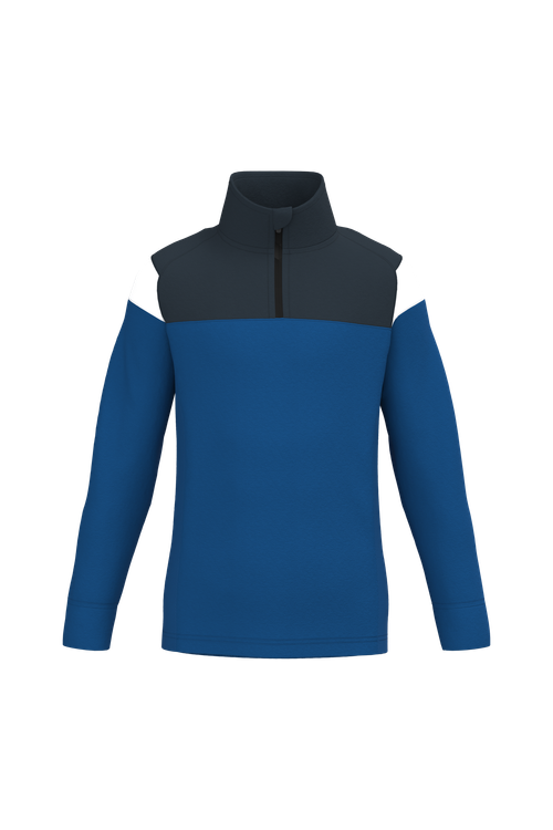 La sudadera infantil 1/4 cremallera está diseñada para ofrecer la máxima comodidad y estilo a los niños. Confeccionada en 100% poliéster interlock mate, esta prenda garantiza durabilidad y resistencia. Su corte recto y el cierre frontal con cremallera invertida de nailon a tono proporcionan un ajuste perfecto y seguro. Las mangas raglán con inserciones contrastadas en los hombros y los paneles a contraste en pecho y hombros añaden un toque moderno y deportivo.