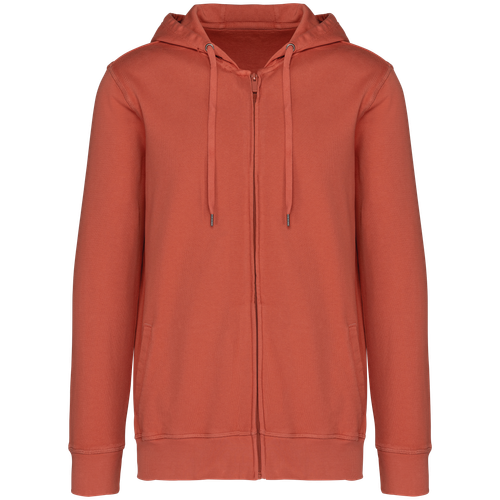 La sudadera organic con cremallera y capucha está confeccionada con 100% algodón orgánico, garantizando una sensación suave y cómoda en cada uso. Su corte ajustado y el lavado con enzimas aseguran un ajuste perfecto y duradero. Además, el interior de felpa no perchada (french terry) proporciona una textura agradable al contacto con la piel.
