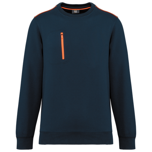 El diseño de la sudadera unisex con bolsillo a zip incluye un corte ajustado que realza la figura sin sacrificar la comodidad. El cuello redondo en canalé 1x1 y la tira cubrecosturas a tono con ribete a contraste añaden un toque de elegancia. El bolsillo en el lado derecho del pecho con cremallera de nylon y tirador contrastado no solo es práctico, sino que también aporta un elemento de diseño moderno. Además, el acabado de media luna en la parte interior-posterior del cuello facilita la personalización de la marca, haciendo de esta sudadera una opción ideal tanto para uso personal como para empresas que buscan uniformes personalizados.