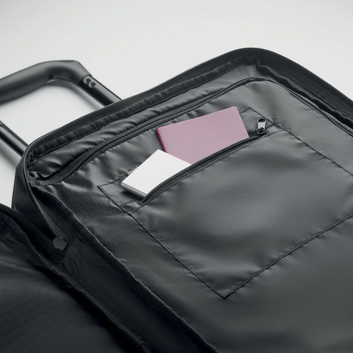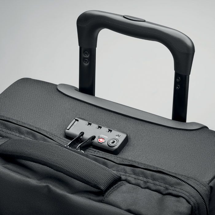 Este trolley no solo destaca por su diseño práctico y elegante, sino también por su compromiso con el medio ambiente. Fabricado en RPET 600D, un material reciclado y resistente, este trolley es una elección eco-consciente que refleja tu compromiso con un estilo de vida sostenible. Las asas superior, lateral e inferior facilitan su manejo en cualquier situación, y las dos ruedas robustas garantizan un desplazamiento suave y sin esfuerzo. Elige inteligencia y sostenibilidad para tus viajes con este trolley de alta calidad.