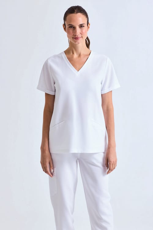 La túnica elástica manga corta mujer es la elección perfecta para quienes buscan una combinación de comodidad y elegancia. Confeccionada con un tejido de alta calidad compuesto por 42% poliéster, 33% poliéster reciclado, 19% viscosa y 6% elastano, esta túnica garantiza una sensación suave y agradable al contacto con la piel. Su diseño de cuello de pico y mangas cortas la hace ideal para cualquier ocasión, ya sea para el trabajo, una salida casual o una reunión con amigos.